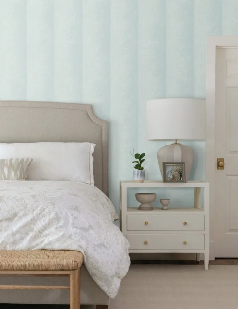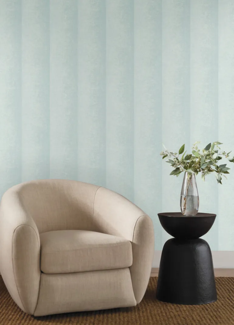 The monochromatic splatter of Particle Stripe provides a painterly transition between the two tonal, adjacent, vertical colors, shown in sky and ocean blue. This Particle Stripe Wallpaper measures approximately 27 inches wide by 27 feet long, measuring approximately 60.8 square feet per roll. Finding beauty in this extraordinary organic world.