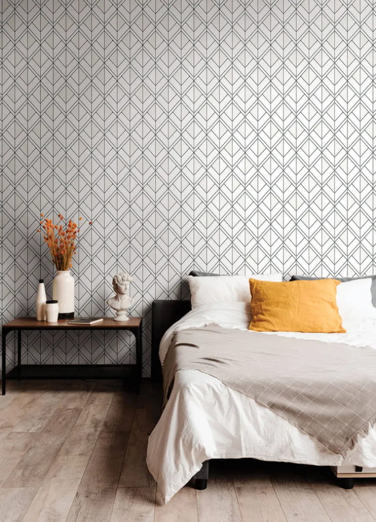 On a solid field, the artist added an exciting grid of narrow lines in contrasting color outlined in metallic ink; the large, but open, contemporary wallpaper design is Diamond Shadow. Purity of form brings geometrics full circle in an anthology of beautiful patterns and perfect proportions, designed for luxury living.