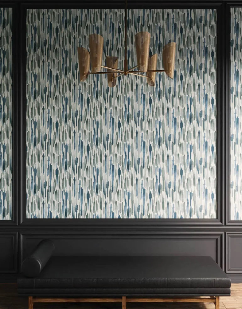 The multicolor streaks of Pluie become the force of rain against a window when rendered in subtle, raised watercolor combinations, shown in ocean blue and stone grey. This Pluie Wallpaper measures approximately 27 inches wide by 27 feet long, measuring approximately 60.8 square feet per roll. A retrospective from the private collections of Christiane Lemieux featuring global, artistic, and handcrafted designs. Lemieux et Cie is luxury in perfect minimalism, edited to be richly layered yet effortlessly relaxed. This is deeply personal style built on an obsessive dedication to quality, craftsmanship, and the perfection found in the imperfect. A retrospective from the private collections of Christiane Lemieux featuring global, artistic, and handcrafted designs.