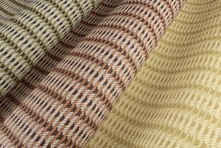 Mozart's woven details enhance the intricate striped design, adding a rhythmic element to the overall pattern. Seen here in copper, beige, and burgundy. This Mozart Wallpaper measures approximately 39.3 inches wide by 32.8 feet long, measuring approximately 107.4 square feet per roll. The passion for decoration is the point of contact between the two realities: an intense and profitable, passionate and spontaneous creative comparison where the emotion of the chromatic elements is intertwined with research into innovative materials and printing techniques. The Missoni Wallcoverings 05 wallpaper collection was born from this vision: an innovative proposal, which harmonizes shades, geometries and nature, in a kaleidoscope of designs, materials and colors interpreted with a technique with a strong innovative value.