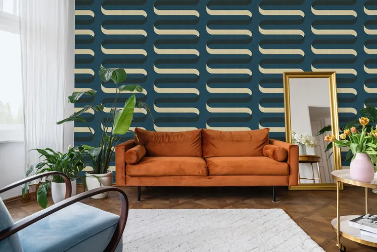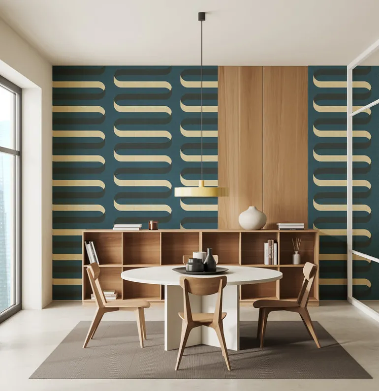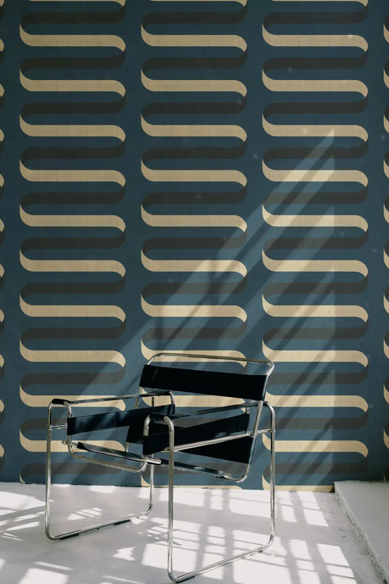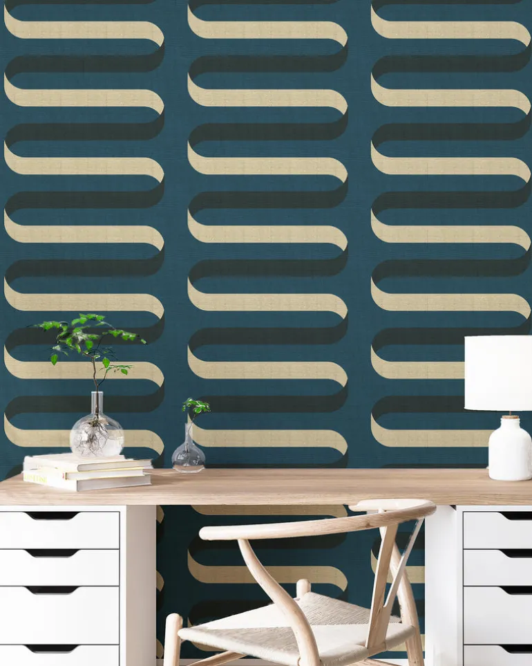 Mitchell Black Shape of Color Folding Ribbon Wallpaper – Peacock Blue