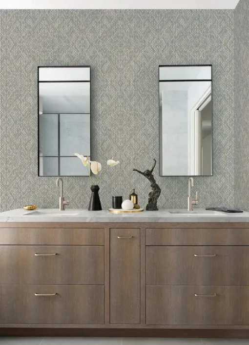 Enjoy textural dimension in this intricate geometric design. This tapestry of diamonds is formed by individual stitches. Felix is an unpasted, non woven wallpaper. Evoke comfort in any room with this versatile wallpaper by Drew and Jonathan Scott. Decorate your home with timeless patterns that are artistically designed to create a beautiful, relaxing space.