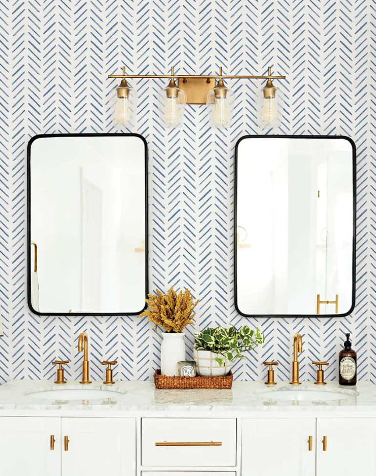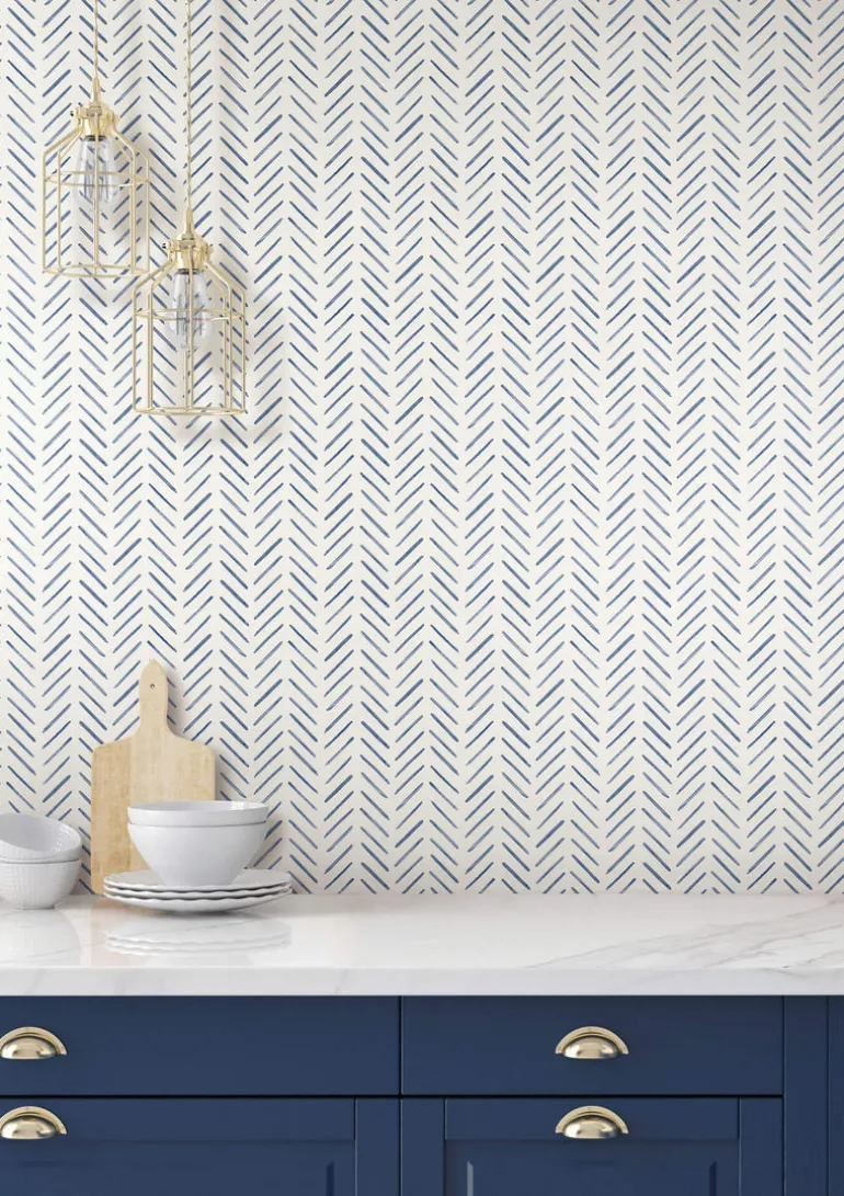 Painted Herringbone wallpaper create a simple zig zag pattern with a series of single brushstrokes.The allure of coastal chic interiors beckons, with an easy elegance that speaks to the playful pace and casual luxury of living by the water's edge.